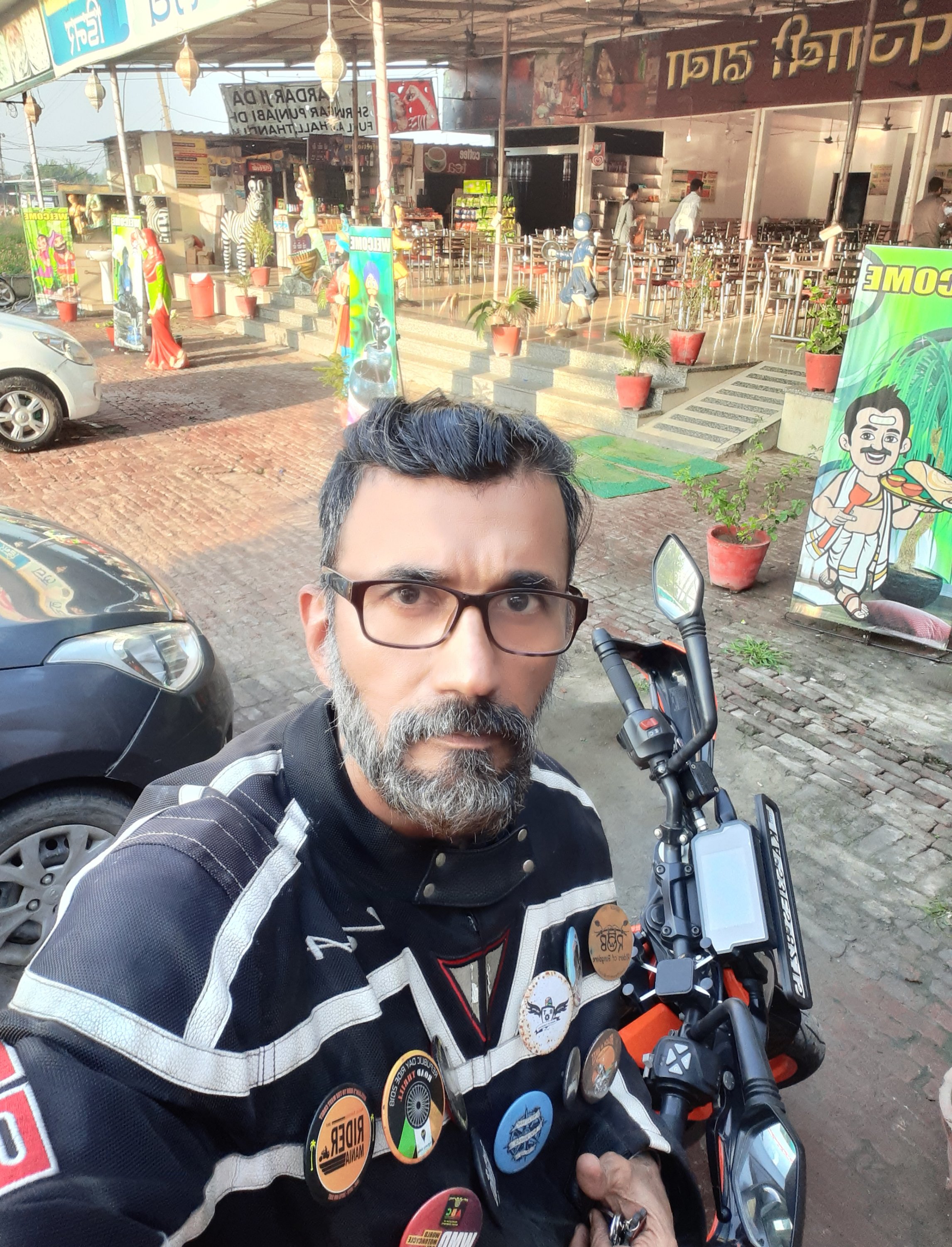 It took 30 minutes for breakfast, yah the restaurant was slow in serving… Anyways, started the bike to come out of the restaurant to join highway… So WHILE joining the highway… I was looking at the right side from where the traffic comes… USUALLY … and with in split second, a bike in high speed came from the wrong direction ( yes on highway) … There was no time even to react… So it was near miss… Since I was at a place where I could curse the guy in local language… I shouted… But this guy didn’t even bother to stop… Phew